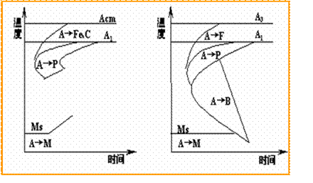 過冷奧氏體:當溫度在A1以上時,奧氏體是穩定的。在A1以下時,奧氏體處于過冷狀態稱為過冷奧氏體。過冷奧氏體轉變是在臨界點以下某個恒溫下發生,就稱為過冷奧氏體的等溫轉變。轉變在連續冷卻的過程中發生,稱為過冷奧氏體的連續冷卻轉變。