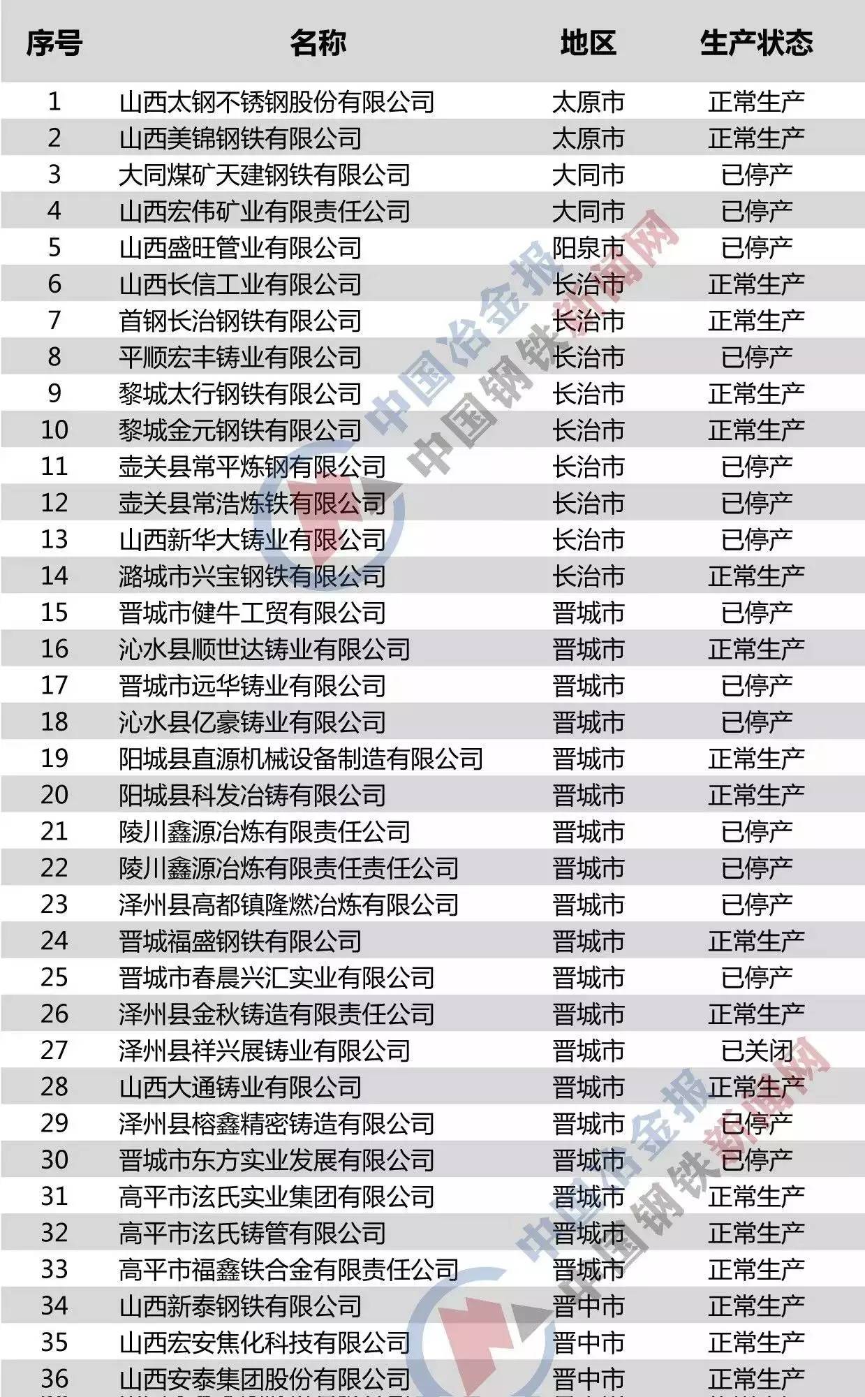 山西省鋼鐵企業名單