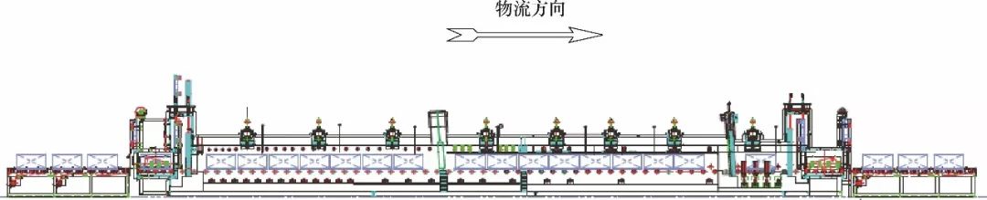 (1)設備由三工位上料臺、前真空鎖氣室、加熱保溫區、中間門、等溫球化區、降溫區、后真空鎖氣室、三工位卸料臺組成,設備全貌見圖1。